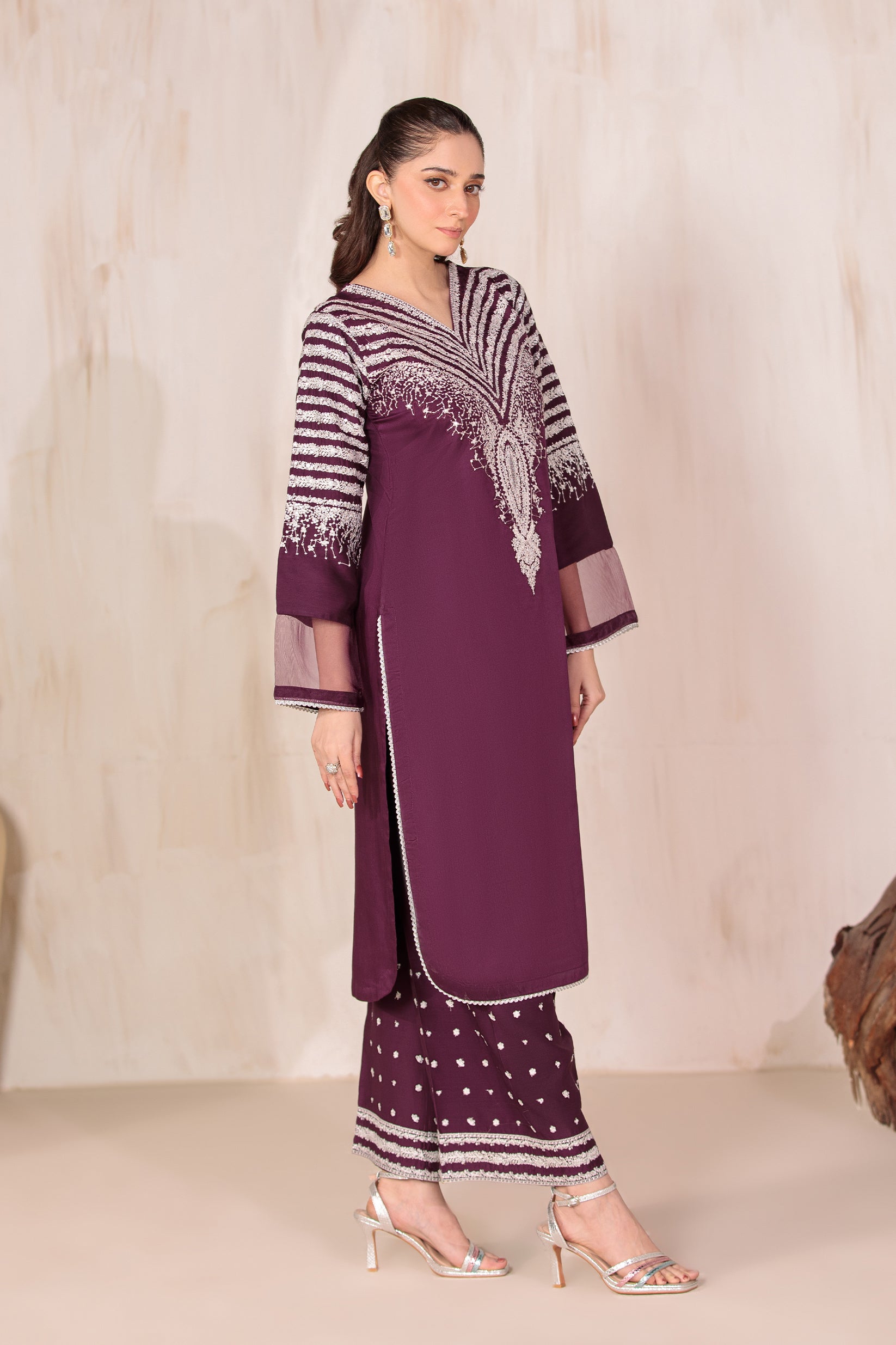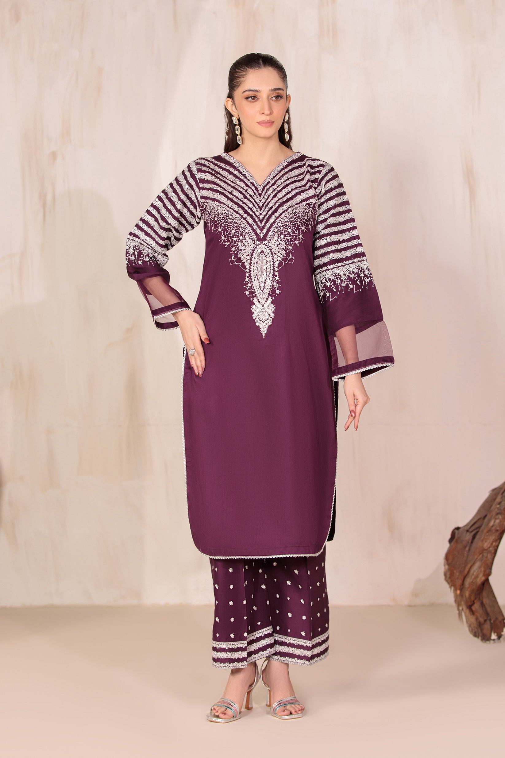 This shirt is crafted from premium viscose fabric with a soft, breathable feel. It features full sequin embroidery on the arms, sleeves, and daman, giving it a rich and elegant look.