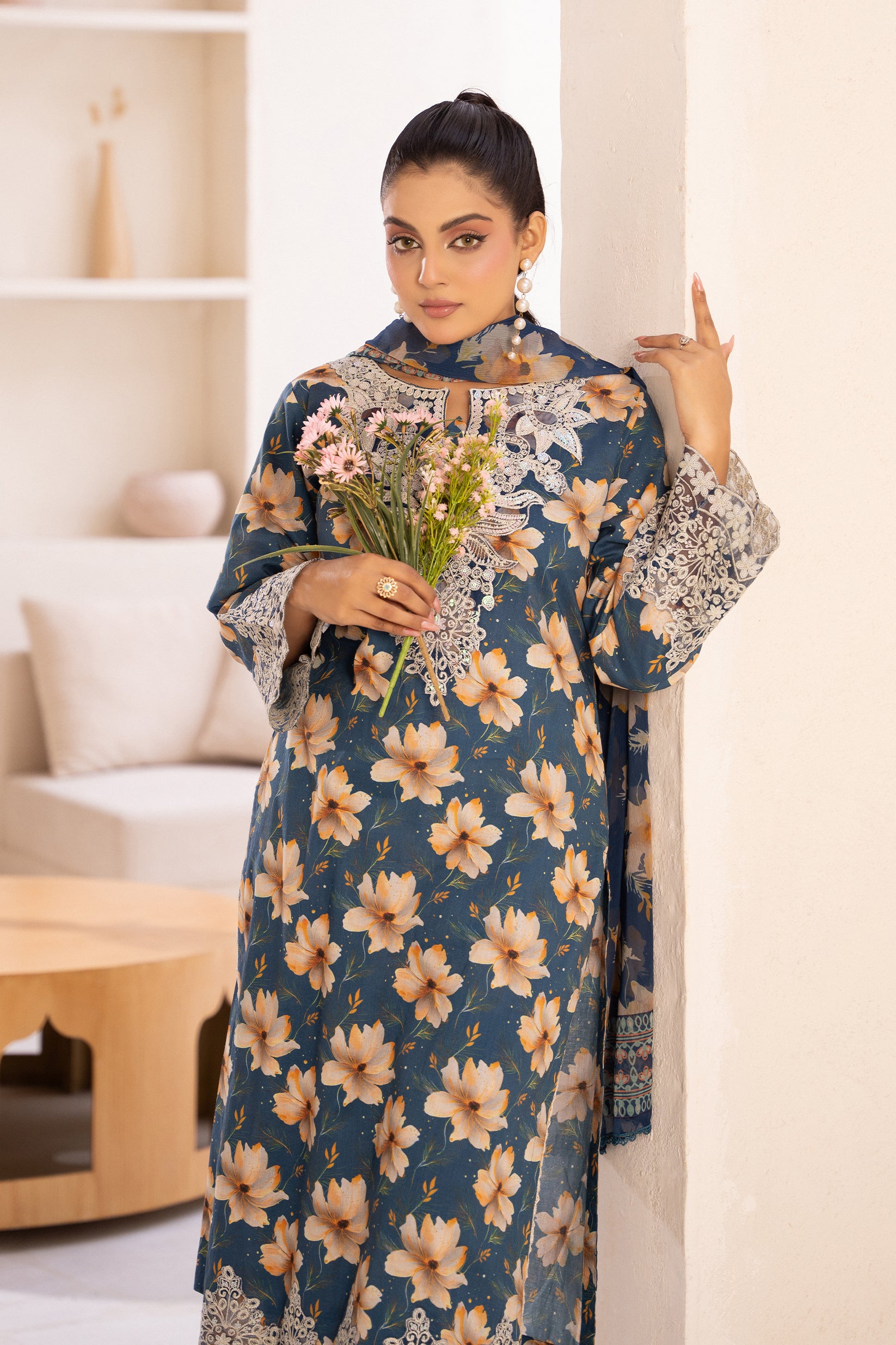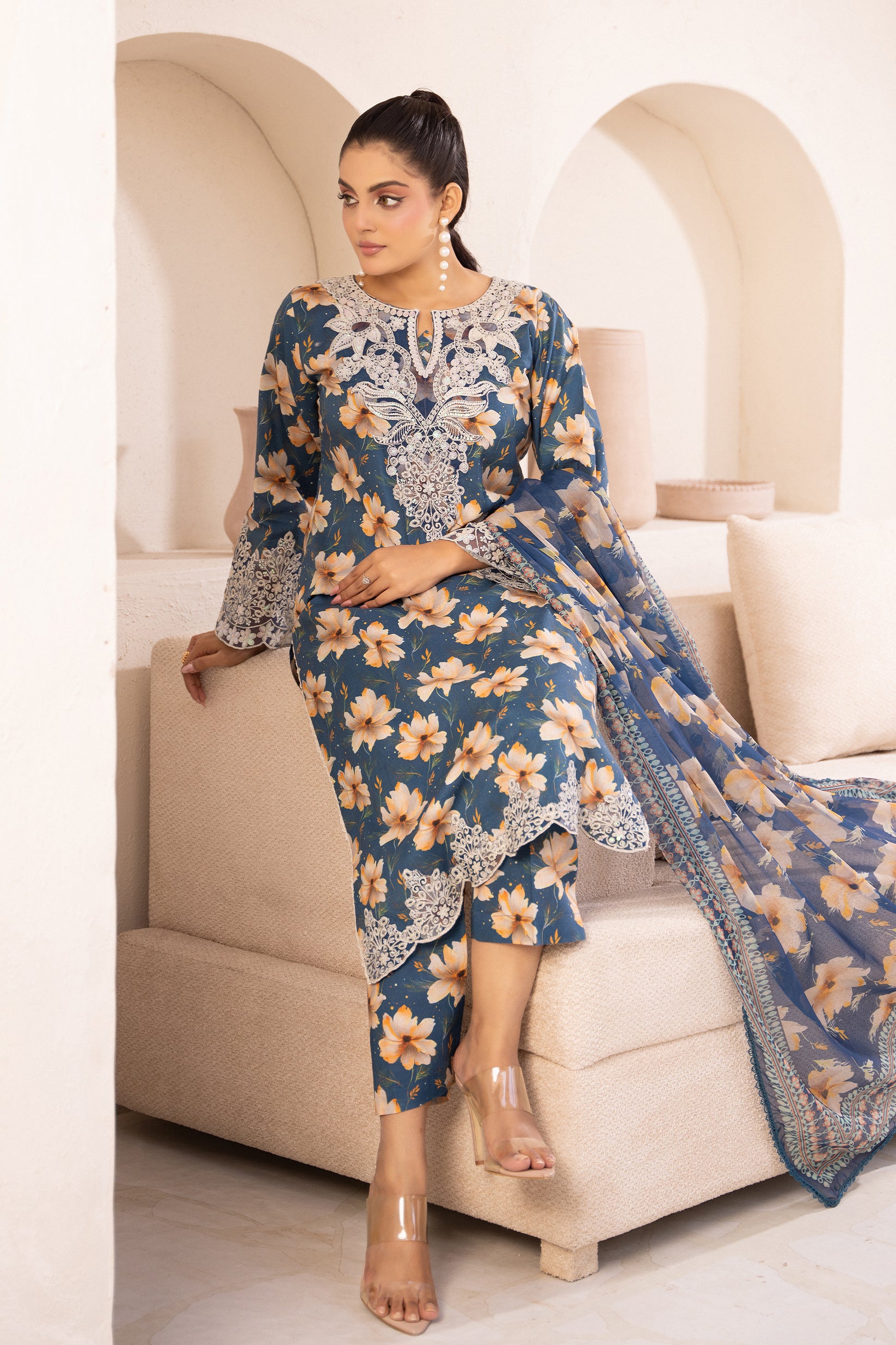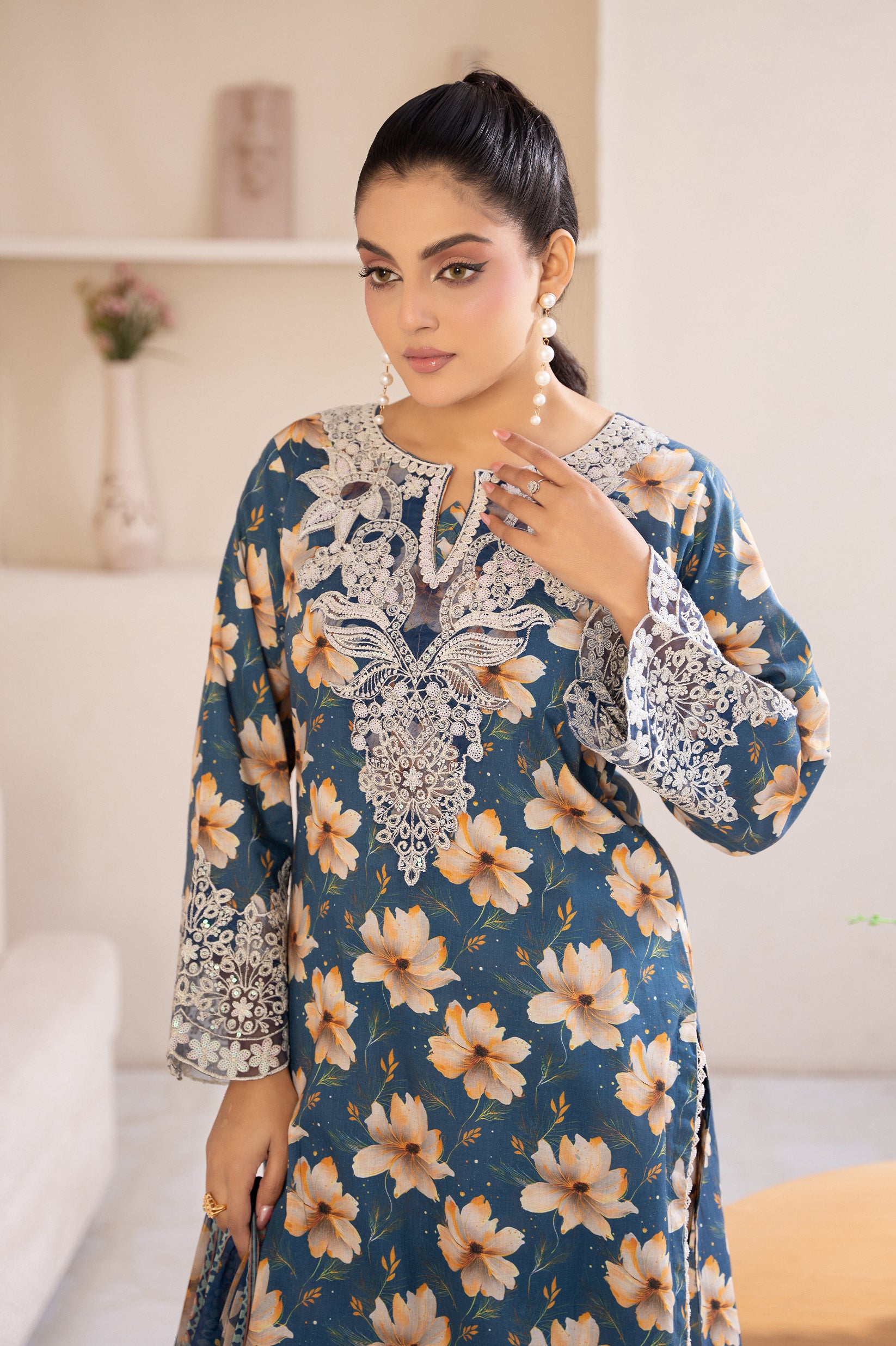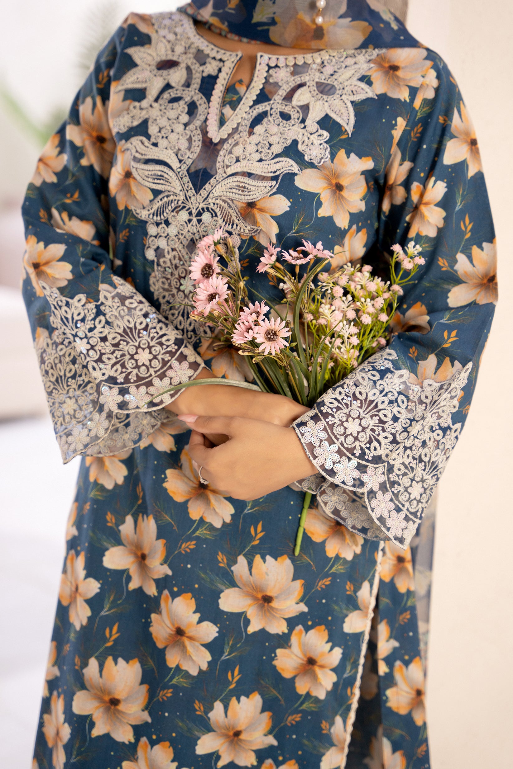 Shirt is featured a multi-colored digital printed with Embroided patch work, creating a harmonious and nature-inspired look. adding depth and elegance to this cohesive design.