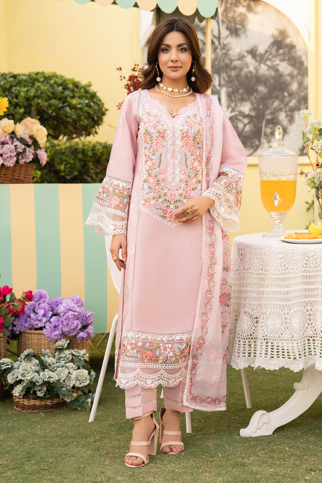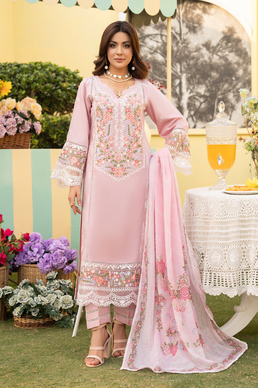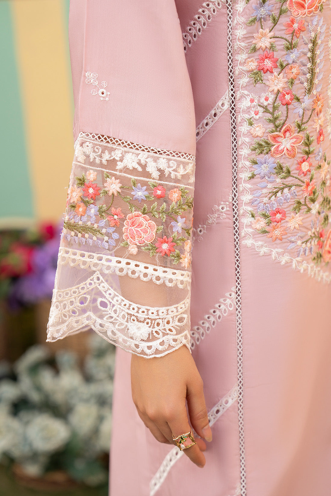 This shirt is crafted from premium Cotton Lawn fabric with a soft, breathable feel. It features full sequence embroidery on the arms, sleeves, and daman, giving it a rich and elegant look.