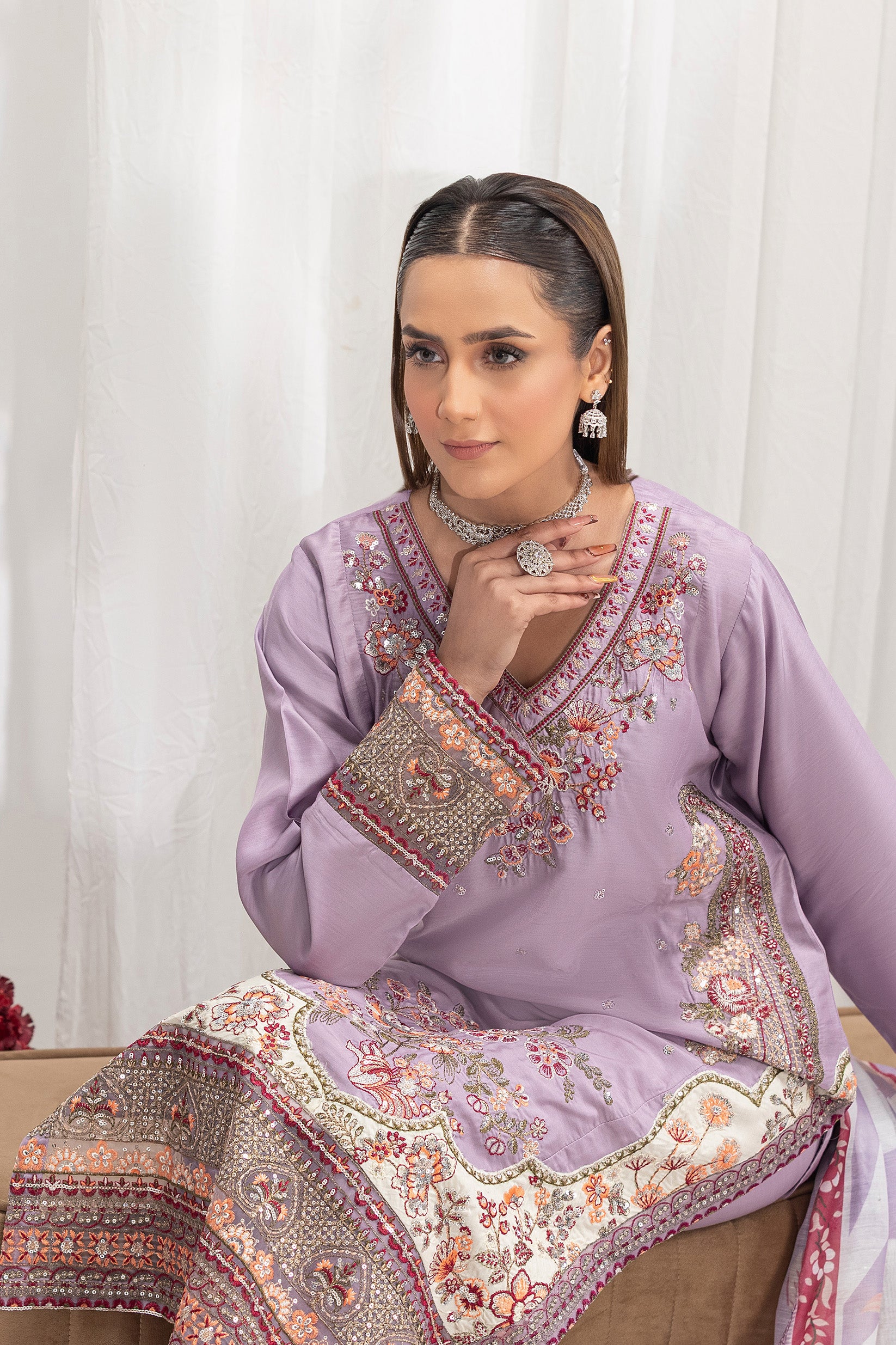 This shirt is crafted from premium viscose fabric with a soft, breathable feel. It features full sequin embroidery on the arms, sleeves, and daman, giving it a rich and elegant look.