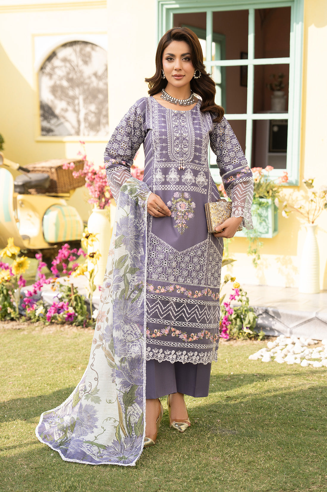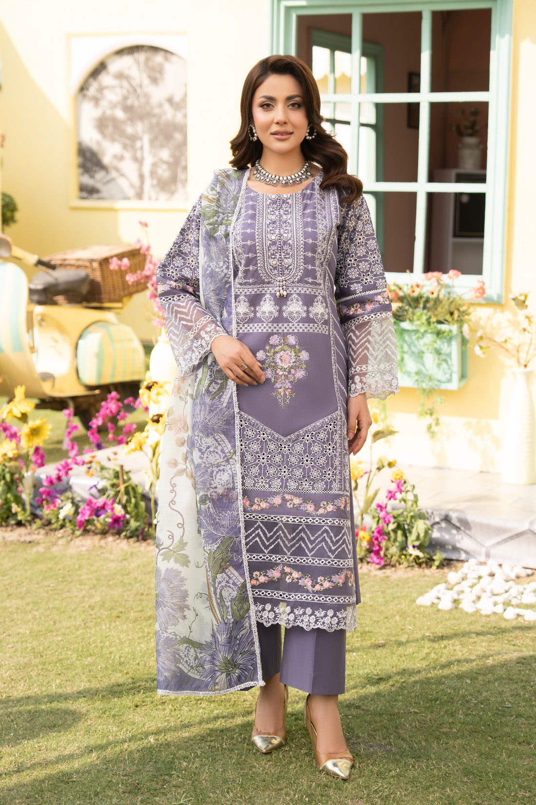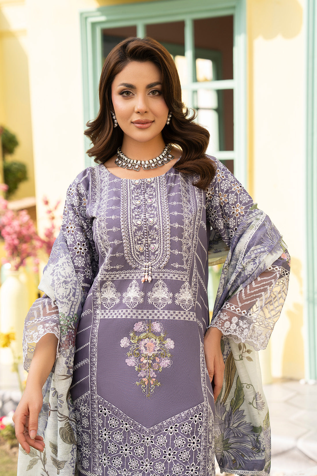 This shirt is crafted from premium Cotton Lawn fabric with a soft, breathable feel. It features full sequence embroidery on the arms, sleeves, and daman, giving it a rich and elegant look.